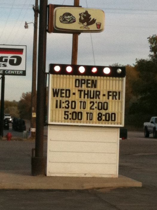 “ From delicious food to customer service is great, from their own pop to slushies. The only thing I have to complain about is that they ain't open as much as I would like, and if they would go back to the original French fries they used to make ”